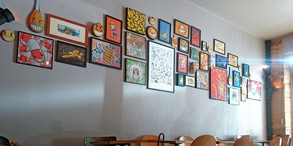 Éric du Tiny Café à Bastille m’invitait à venir habiller son mur de mes Boyos.